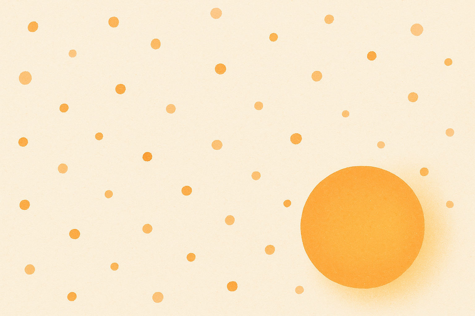 Fond crème parsemé de pois orange doux, avec illustrations vectorielles en bas : fleur orange, arc-en-ciel stylisé, livre ouvert beige, tasse orange, feuille d'automne, branches jaunes et soleil diffus. Style minimaliste et pastel, ambiance cosy et automnale, palette chaude avec des tons terreux et orangés.