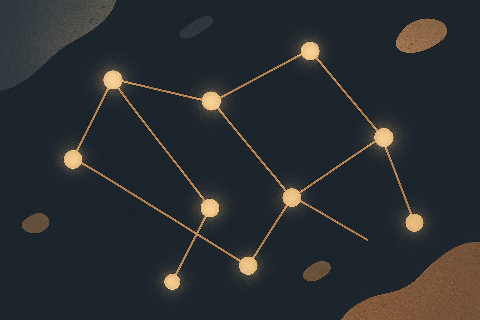 Illustration minimaliste aux tons doux beige, terracotta, vert olive et jaune sable. Éléments visuels : plante en pot, bougie allumée, coussins à motifs, tasse fumante, miroir, livres empilés, lune, étoiles et arc-en-ciel stylisé. Style cosy, chaleureux et épuré, parfait pour ambiance de bureau ou coin lecture.
