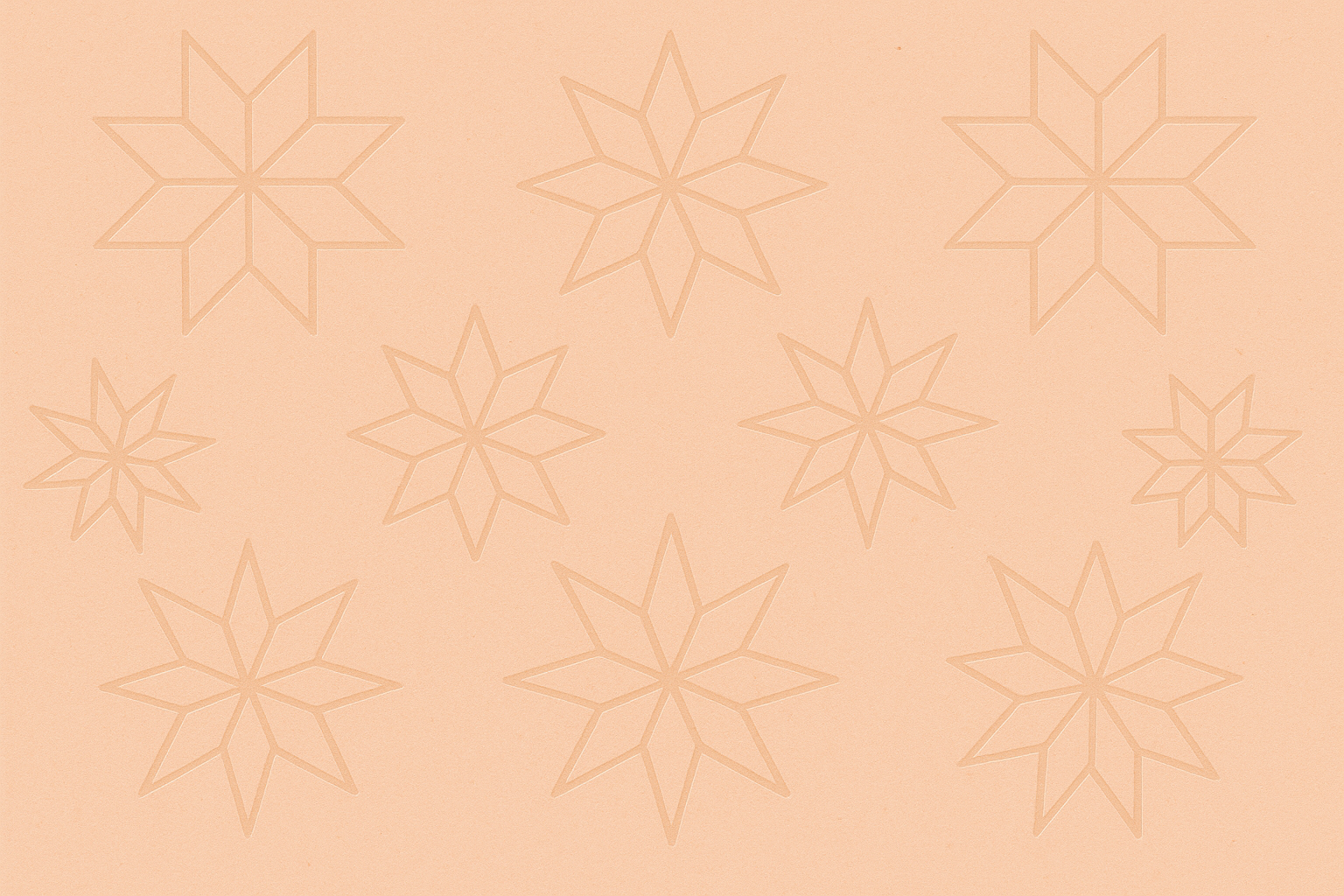Illustration minimaliste aux tons chauds beige, marron et vert olive, représentant un livre ouvert, une tasse de café, une plante en pot, une bougie allumée, une étoile décorative et une couverture à carreaux. Style épuré et cosy, ambiance douce et réconfortante, parfaite pour un fond de carte postale professionnelle avec espace vide en haut pour le texte.