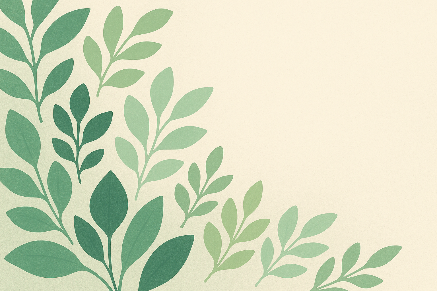 Illustration minimaliste aux tons pastel doux (beige, vert olive, ocre, terracotta) représentant une tasse de café fumante, une bougie allumée, une horloge, un livre ouvert, des chaussons, des feuilles décoratives et un cadre mural. L’ensemble est disposé en bas de l’image sur fond crème, laissant un grand espace vide en haut pour le texte. Style épuré, chaleureux et professionnel, parfait pour des cartes postales de communication d’entreprise.