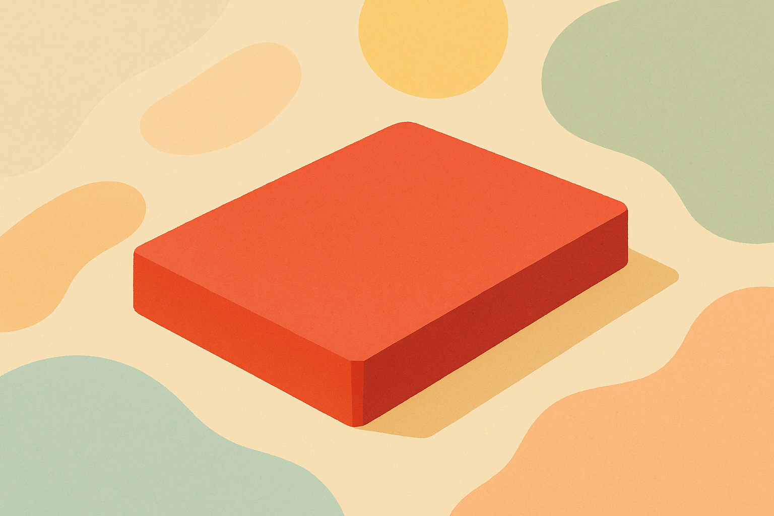 Illustration vectorielle au style minimaliste et pastel avec des éléments décoratifs comme une plante verte, un coussin orange, une bougie, un livre ouvert, une tasse de café, un vase orange avec des fleurs jaunes, des arcs-en-ciel rouges, des étoiles dorées et des formes abstraites. Palette de couleurs douces : beige, vert olive, terracotta, jaune moutarde et bleu doux. Composition équilibrée en bas de l'image avec un grand espace vide en haut pour le texte.