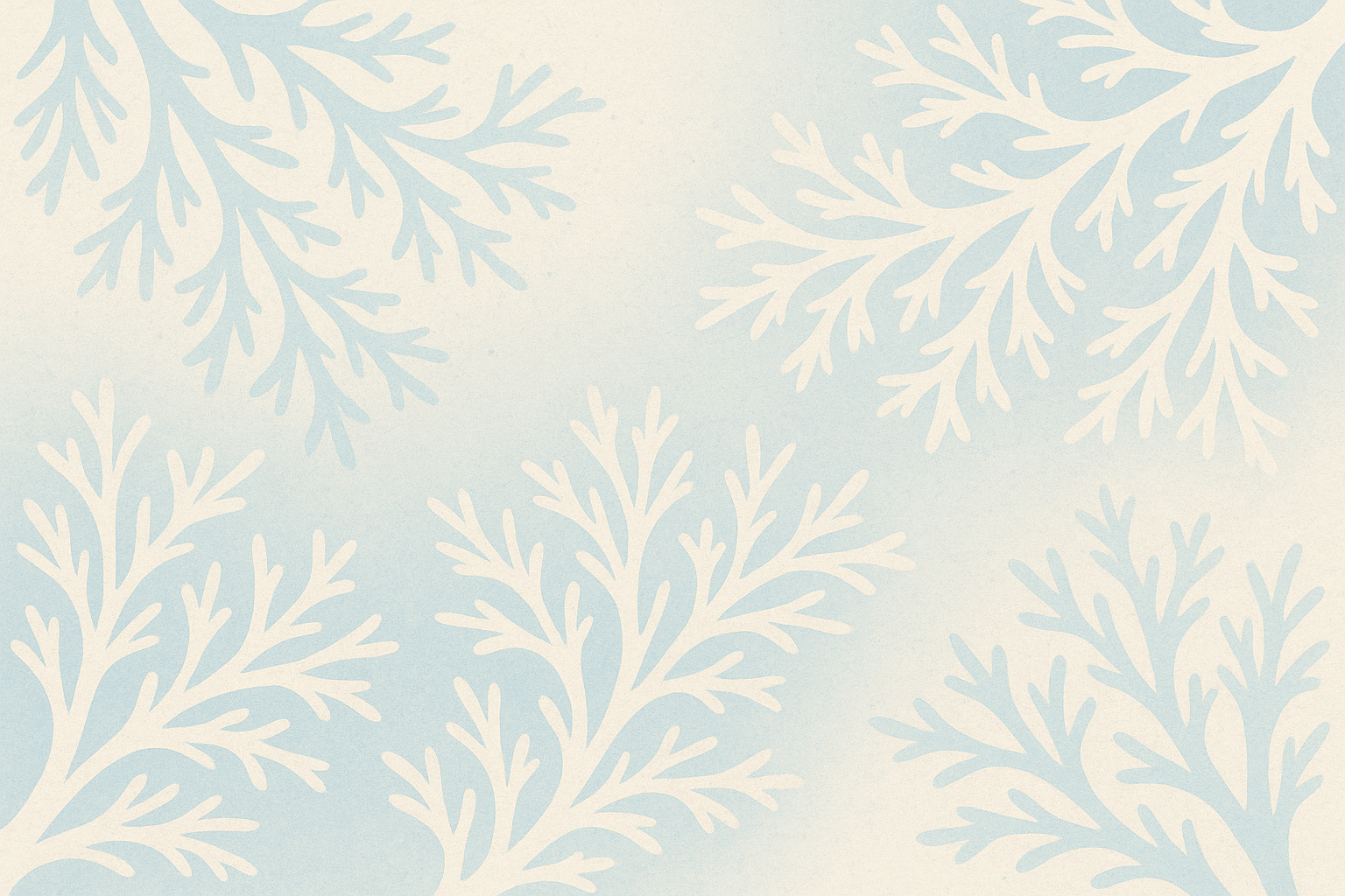 Illustration minimaliste aux tons pastel beige, orange et bleu doux, représentant une tasse fumante, un livre fermé, une bougie allumée et une branche feuillue. Fond crème uni avec éléments décoratifs abstraits comme des nuages stylisés et des étoiles. Ambiance cosy et professionnelle, parfaite pour visuels de correspondance d'affaires.