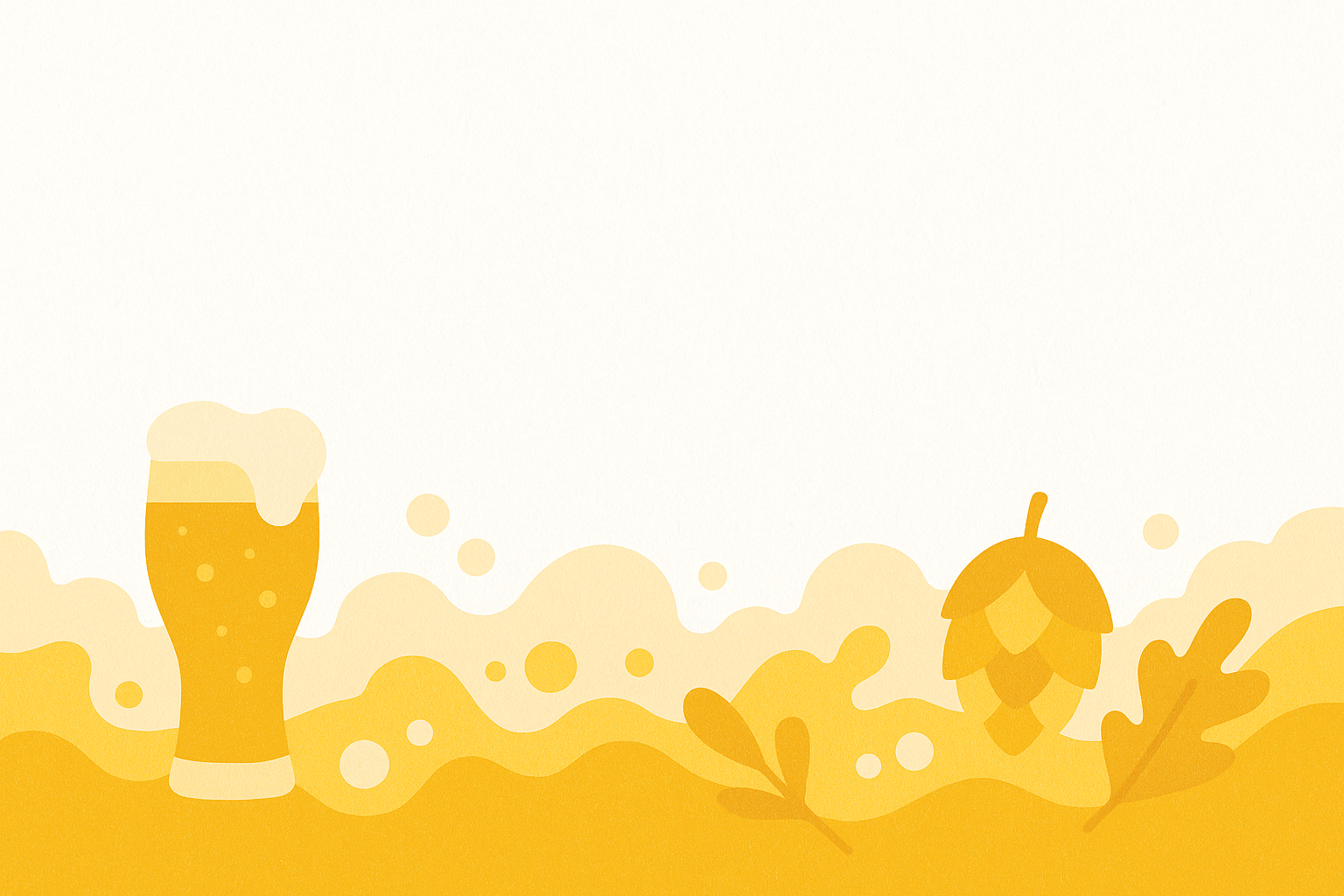 Illustration vectorielle en tons jaunes et orangés représentant un verre de bière mousseuse, des bulles, un cône de houblon et des feuilles stylisées sur fond blanc. Le style est plat, minimaliste et convivial, avec des formes arrondies et des dégradés doux évoquant la fraîcheur et l’artisanat. Parfait pour les visuels liés à la bière, aux brasseries, ou à l’univers de la gastronomie.