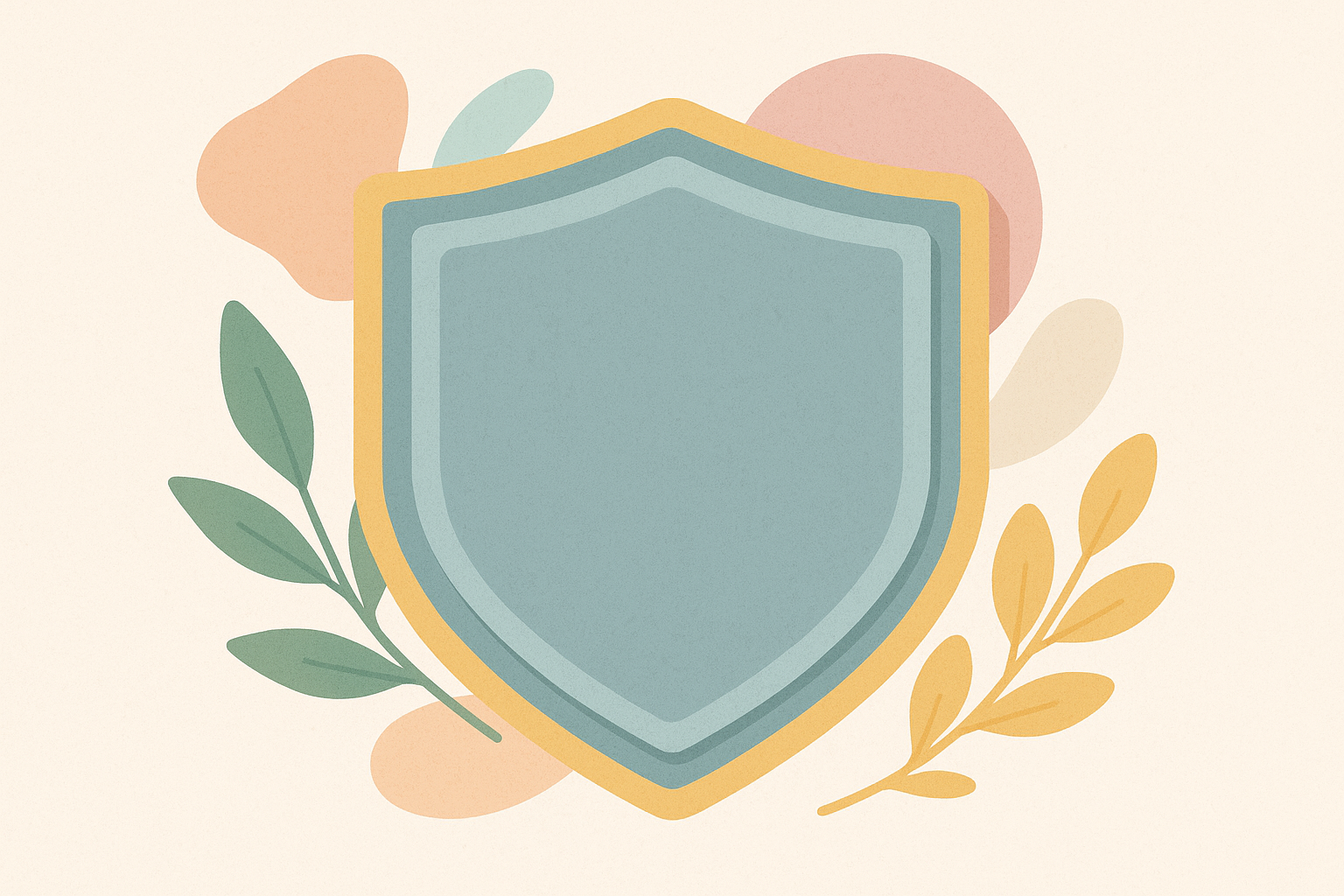 Illustration vectorielle d’un blason doré à double contour sur fond crème uni. Le style est minimaliste, avec des lignes épurées et une palette de couleurs sobres : or mat et beige clair. L’élément central est un écusson symétrique, positionné en bas de l’image, laissant un grand espace vide en haut pour du texte ou un logo.