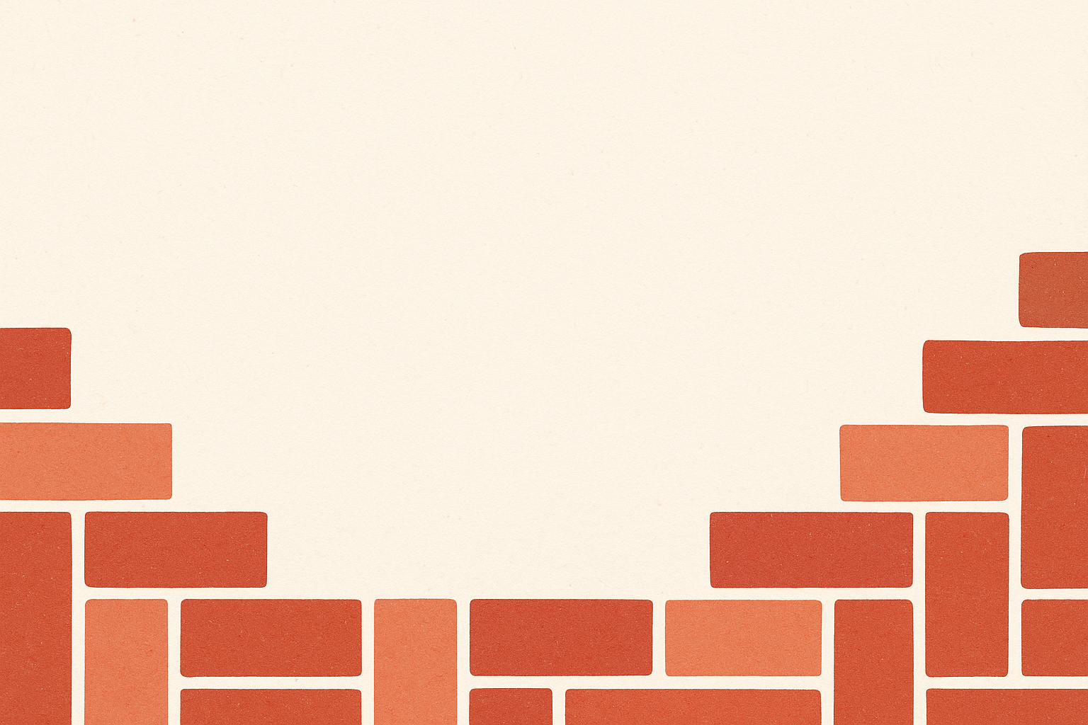Motif de rectangles rouges et orangés en dégradé, disposés en forme de briques sur un fond beige texturé. Design minimaliste, symétrique et géométrique avec des formes rectangulaires nettes et des tons chauds allant du rouge brique au corail. Composition équilibrée avec un espace central vide pour le texte ou le message.
