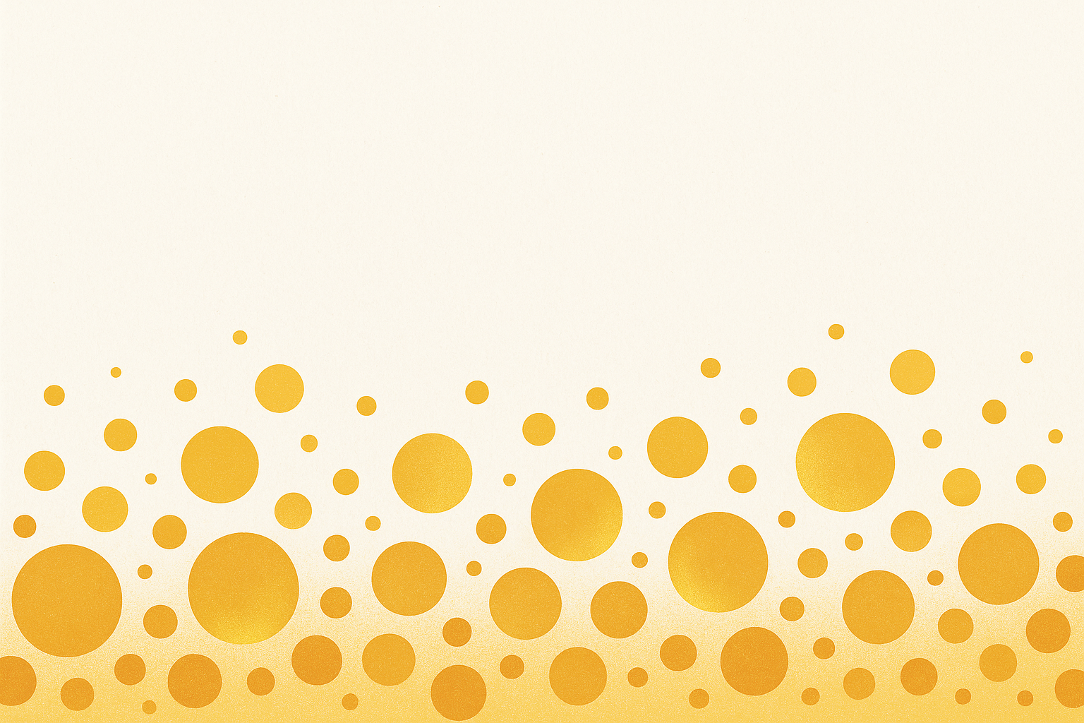 Motif de bulles dorées de tailles variées sur fond crème clair, disposées en dégradé montant depuis le bas. Les cercles sont uniformément répartis, créant un effet festif et lumineux. Style graphique minimaliste avec palette de couleurs chaudes jaune-orangé et blanc cassé, parfait pour un usage professionnel élégant.
