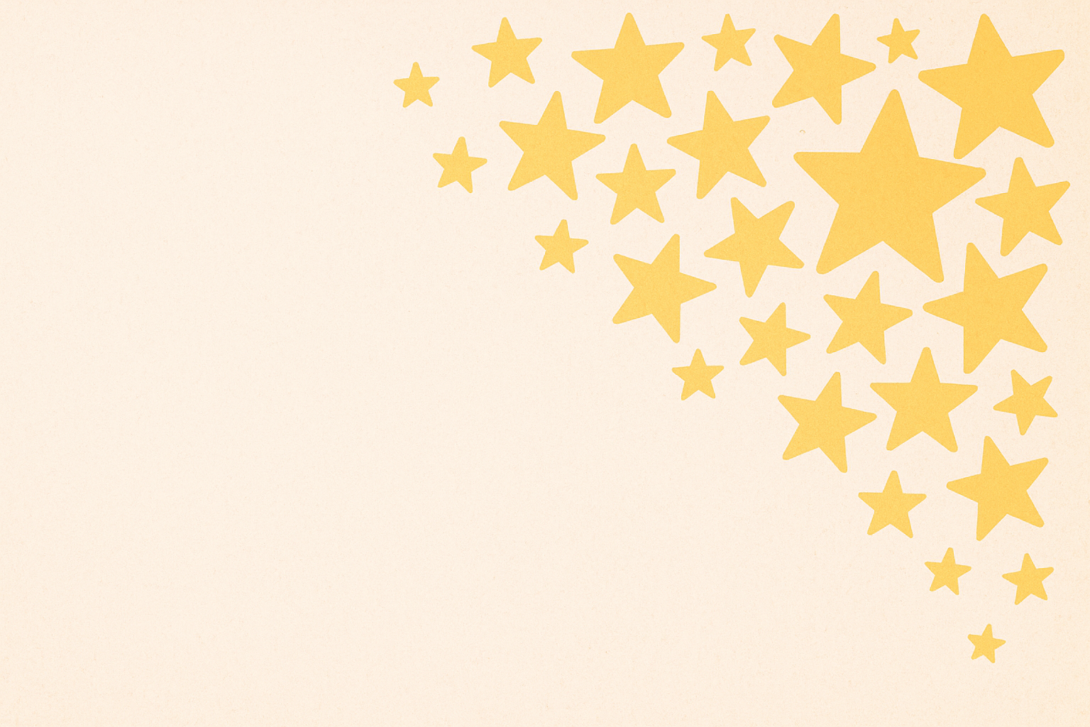 Illustration minimaliste aux tons pastel chauds (ocre, terracotta, beige, vert olive) représentant une scène de bureau avec plante en pot, livres empilés, horloge carrée, bougie allumée, tasse, engrenage, cœur et étoile. Style plat et épuré avec fond crème uni, parfait pour un visuel de carte postale professionnelle douce et moderne.