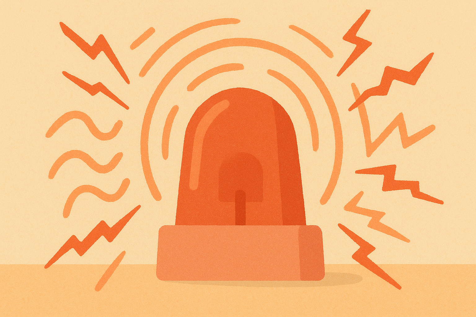 Illustration vectorielle dans un style minimaliste aux tons chauds beige, terracotta, vert olive et brun. Éléments visuels : plante en pot, lampe orange, commode, réveil, cadre abstrait, haut-parleur, vase rose avec fleurs, tasse noire et couverture beige. Ambiance cosy et professionnelle, parfaite pour un fond de carte postale de bureau ou d'intérieur chaleureux.