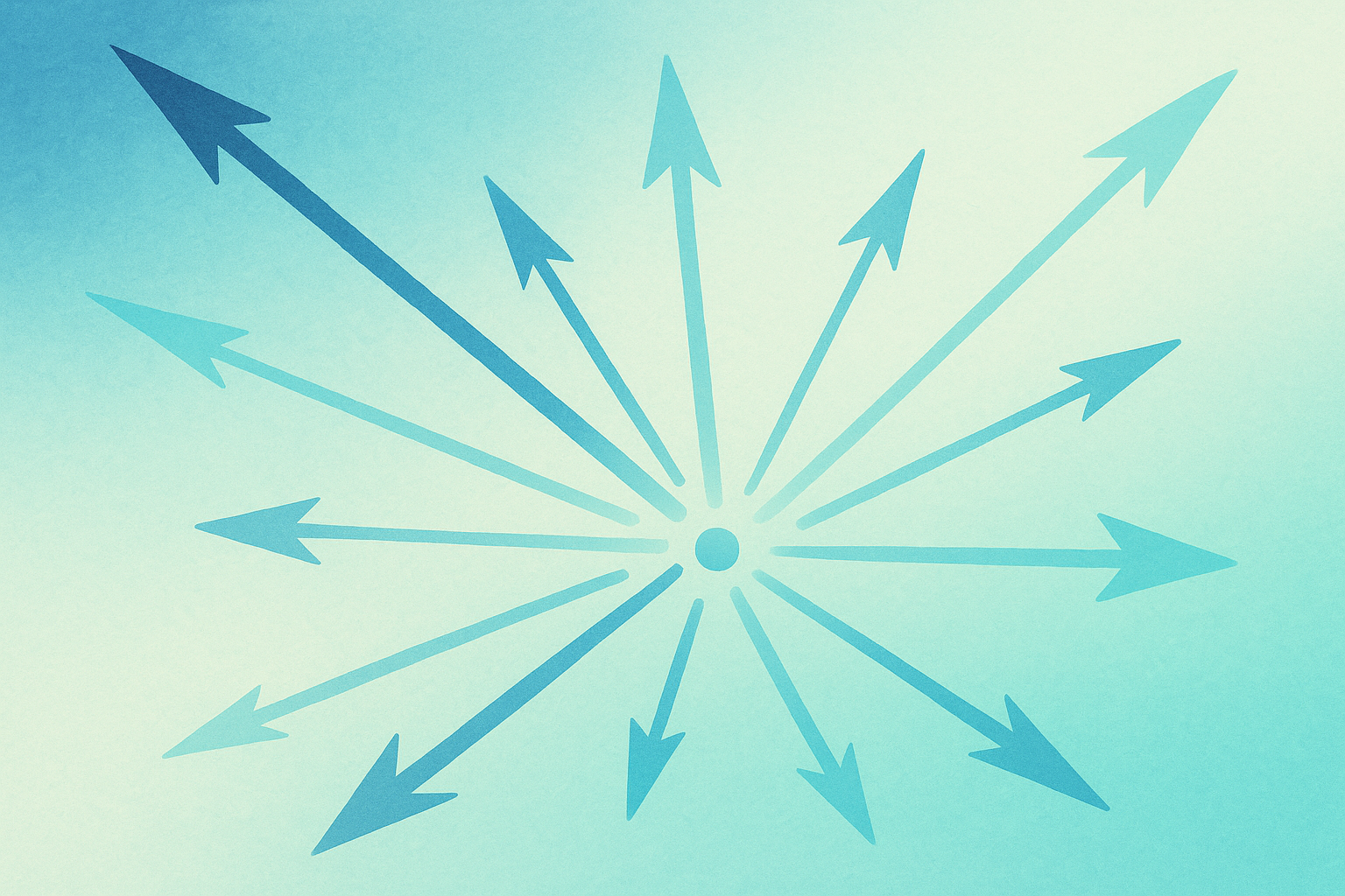 Illustration vectorielle minimaliste avec des éléments de bureau : plante verte en pot, livres empilés, lampe de table, ampoule, cœur, fleur, tasse, horloge ronde, arc-en-ciel et livre ouvert. Palette de couleurs douces et pastel incluant des tons de vert sauge, orange doux, bleu ciel, beige et terracotta. Style plat et épuré avec espace blanc en haut pour texte ou logo.