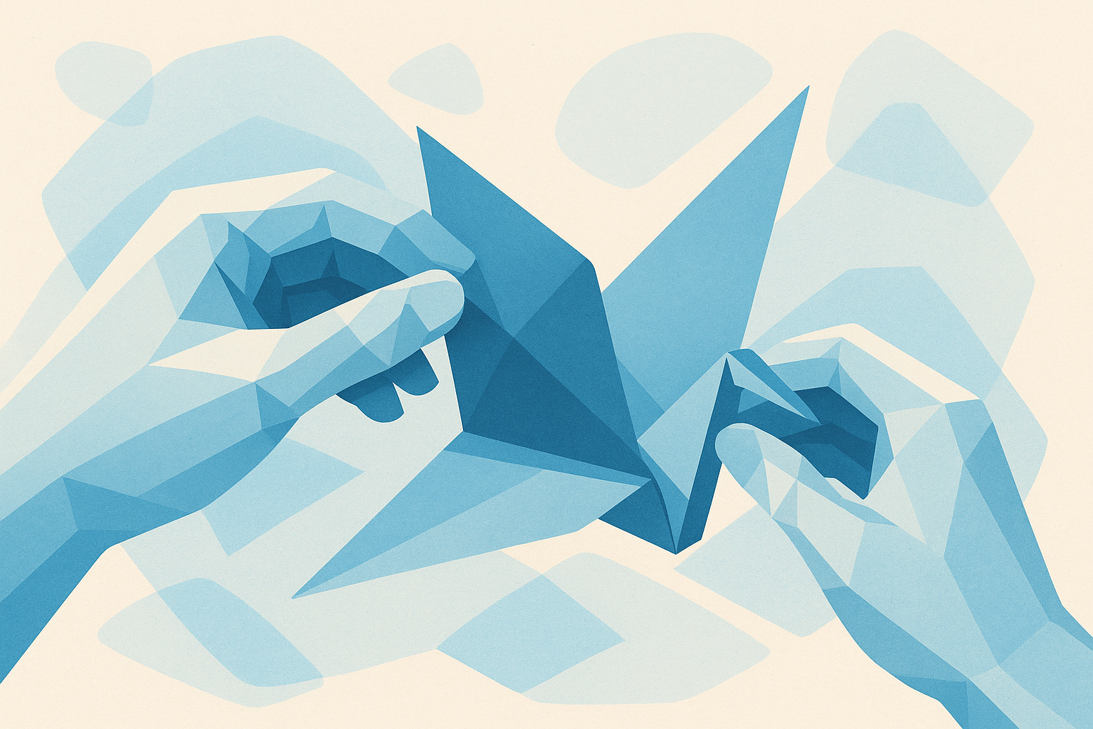 Illustration vectorielle minimaliste représentant des éléments de bureau stylisés : lampe, lunettes, tasse, plante, règle, formes géométriques abstraites. Palette douce de tons pastel : orange, bleu, vert, beige et noir. Design épuré avec fond crème texturé, idéal pour ambiance professionnelle et créative.