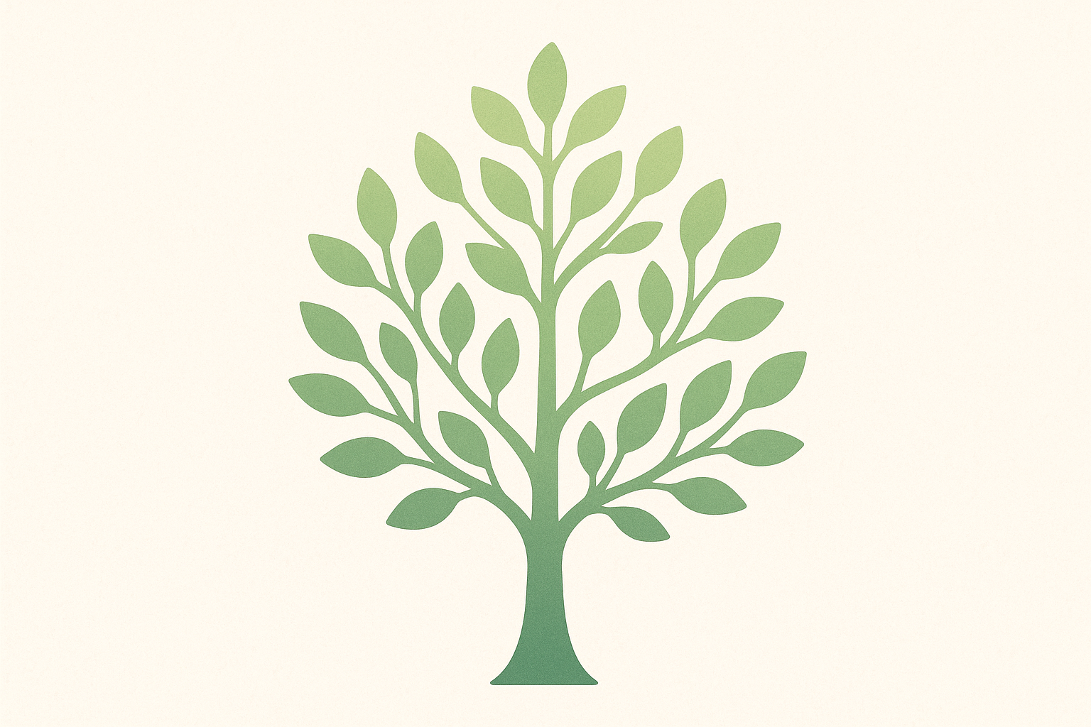 Illustration minimaliste aux tons pastel avec une lampe de bureau orange, un livre ouvert, une plante verte en pot, une tasse de café fumante, des lunettes rondes, et des éléments décoratifs abstraits (étoiles, feuilles, symboles). Palette de couleurs douces : vert olive, terracotta, beige, jaune moutarde. Style épuré et chaleureux, ambiance de bureau calme et inspirante.