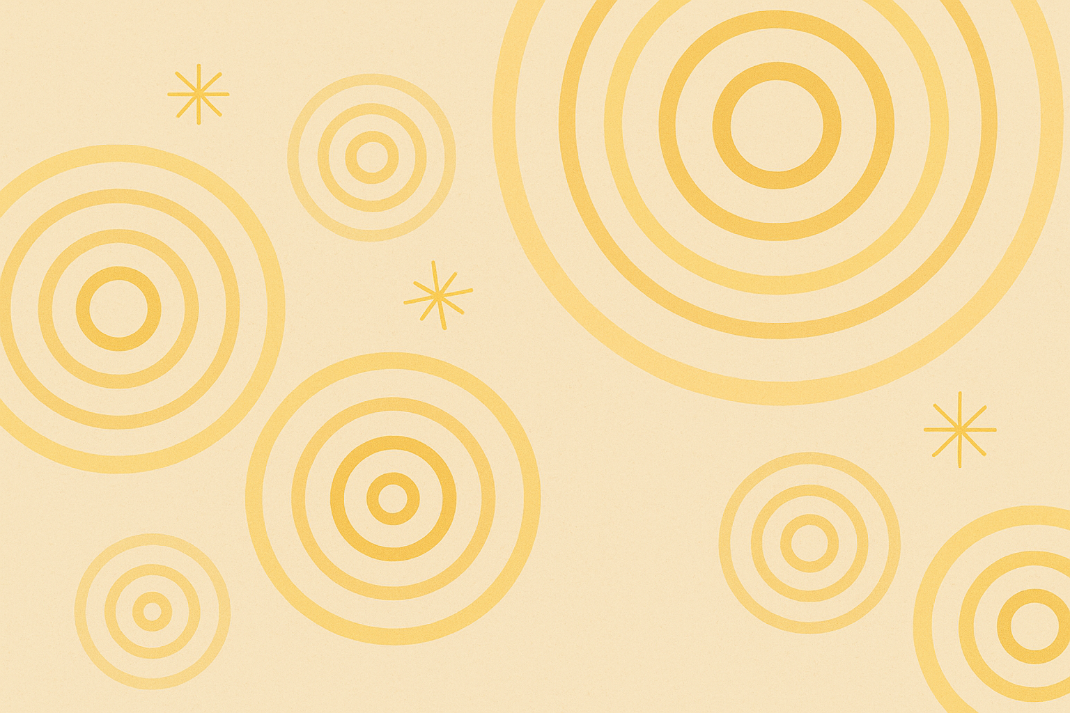 Illustration minimaliste en tons chauds (jaune, orange, beige) représentant des éléments festifs : fusée, étoile, verre de vin, arc-en-ciel stylisé, confettis et feu d’artifice. Le fond crème clair et l’esthétique douce et géométrique en font un visuel parfait pour des cartes postales professionnelles au style moderne et chaleureux.