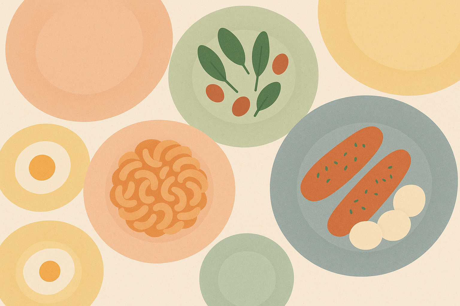 Fond crème avec une rangée de grands cercles superposés en bas de l’image, dans des tons pastel doux : vert sauge, corail, jaune moutarde, pêche et beige. Les cercles ont un contour intérieur fin, créant un effet de profondeur minimaliste. Style graphique plat, ambiance légère et professionnelle, parfaite pour des visuels de correspondance d'affaires ou de papeterie moderne.