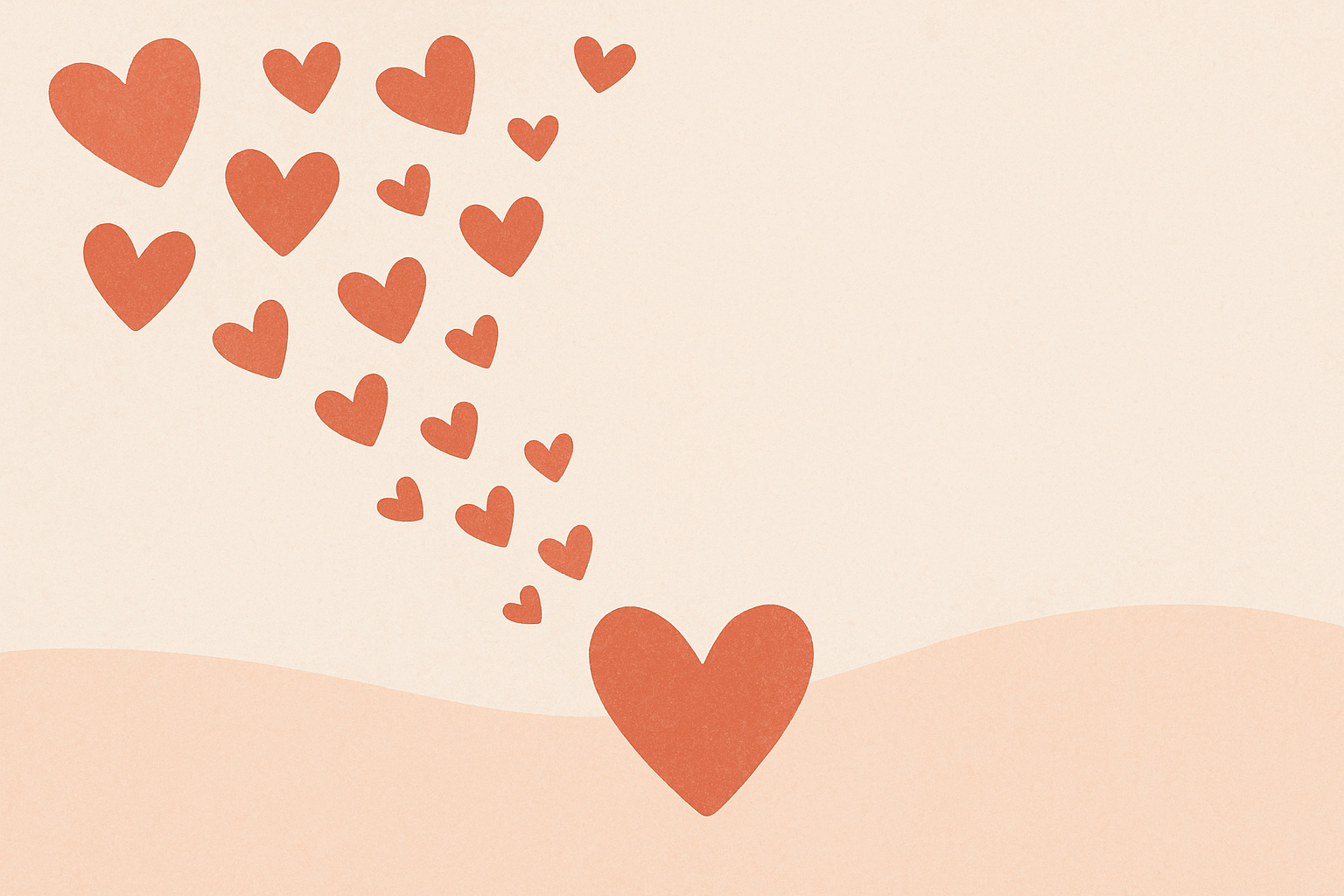 Motif de cœurs rouges orangés en forme simple et pleine, dispersés en diagonale sur un fond crème texturé. Le style est minimaliste et chaleureux, avec une composition aérée laissant beaucoup d’espace vide pour le texte. Idéal pour des recherches incluant : cœurs, rouge, fond clair, design doux, communication affective, carte postale professionnelle.