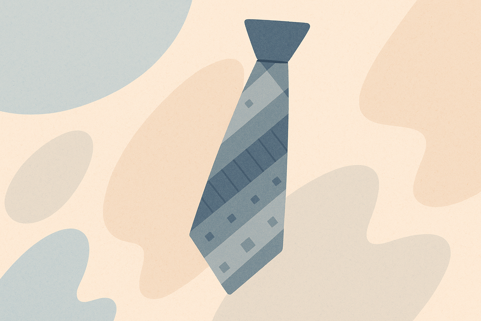 Illustration minimaliste d'une cravate bleue composée de formes géométriques en dégradés de bleu, sur fond crème uni. Style épuré, professionnel, avec une touche graphique moderne. Idéal pour des thèmes de bureau, affaires, entreprise, élégance masculine, ou communication corporate.