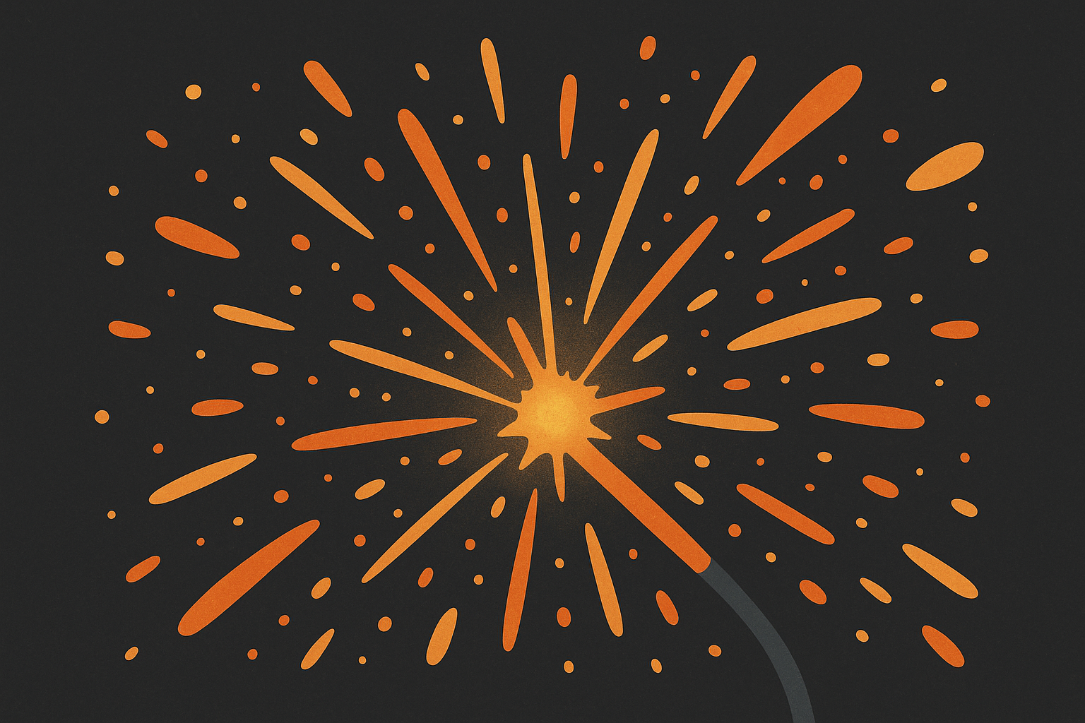 Illustration vectorielle avec des outils industriels stylisés comme un marteau et un chalumeau, entourés d’éclats et de particules en jaune, orange et brun sur fond crème. Le style est minimaliste avec des formes géométriques nettes et des couleurs chaudes évoquant l’énergie, la fabrication et le travail manuel. Idéal pour des visuels liés à l’ingénierie, la production ou l’artisanat.