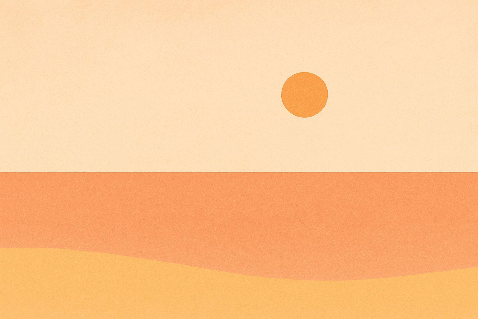 Illustration vectorielle aux tons pastel avec lunettes de soleil, tube de crème solaire, appareil photo bleu, coquillage, tranche d’orange, étoile de mer et feuille de palmier sur fond sable et blanc. Ambiance estivale, palette orange, beige, bleu doux, style plat minimaliste parfait pour thème vacances ou été professionnel.
