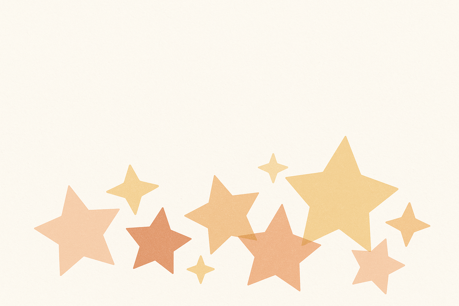 Motif de plusieurs étoiles aux formes variées en dégradés de jaune, orange, pêche et beige sur fond crème texturé. Style minimaliste, doux et chaleureux, avec une disposition équilibrée des éléments en bas de l'image laissant un grand espace vide en haut pour le texte ou le message. Convient pour ambiance professionnelle, festive ou inspirante.
