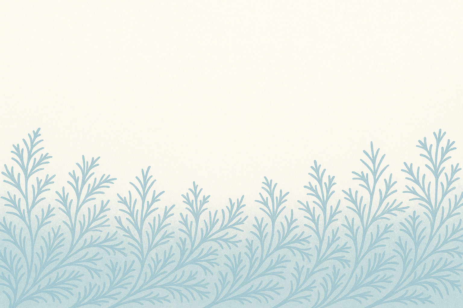 Motif de feuillage stylisé en dégradé bleu clair sur fond crème, avec des branches fines et symétriques évoquant des plantes givrées. Design minimaliste, naturel et apaisant, parfait pour des cartes postales à usage professionnel. Couleurs douces, style épuré, ambiance calme et professionnelle.