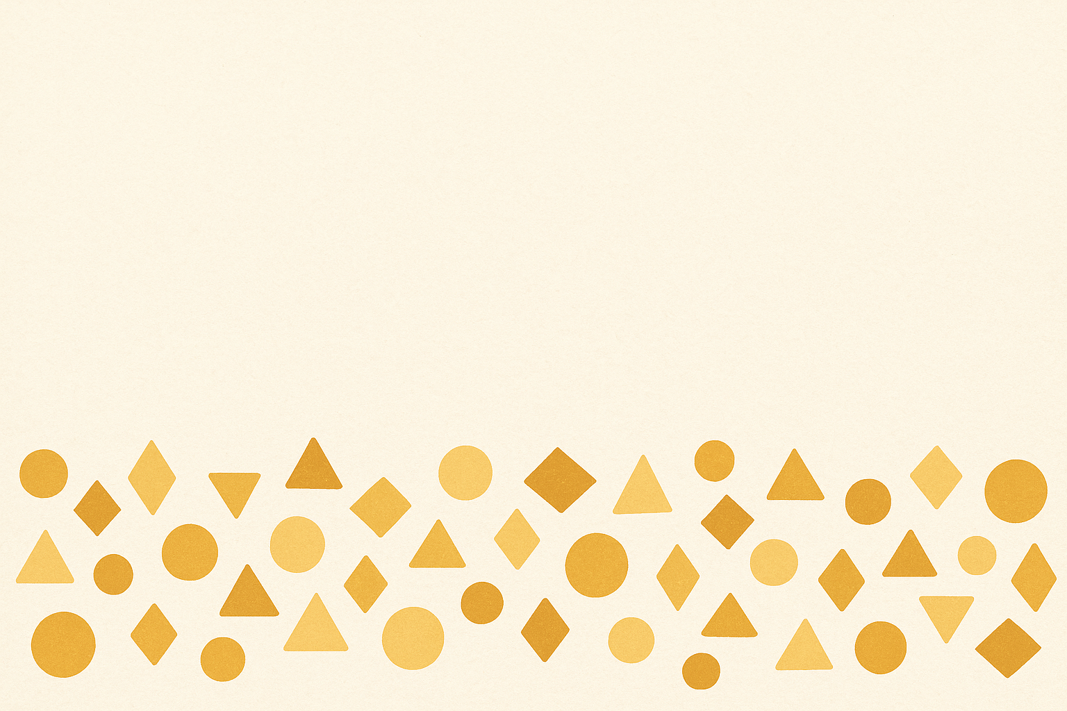 Motif géométrique composé de cercles, triangles, losanges et carrés en dégradés de jaune et doré sur fond crème texturé. Design minimaliste et symétrique, avec une bande décorative en bas de l'image. Style épuré, couleurs chaudes et harmonieuses, parfait pour un usage professionnel ou institutionnel.