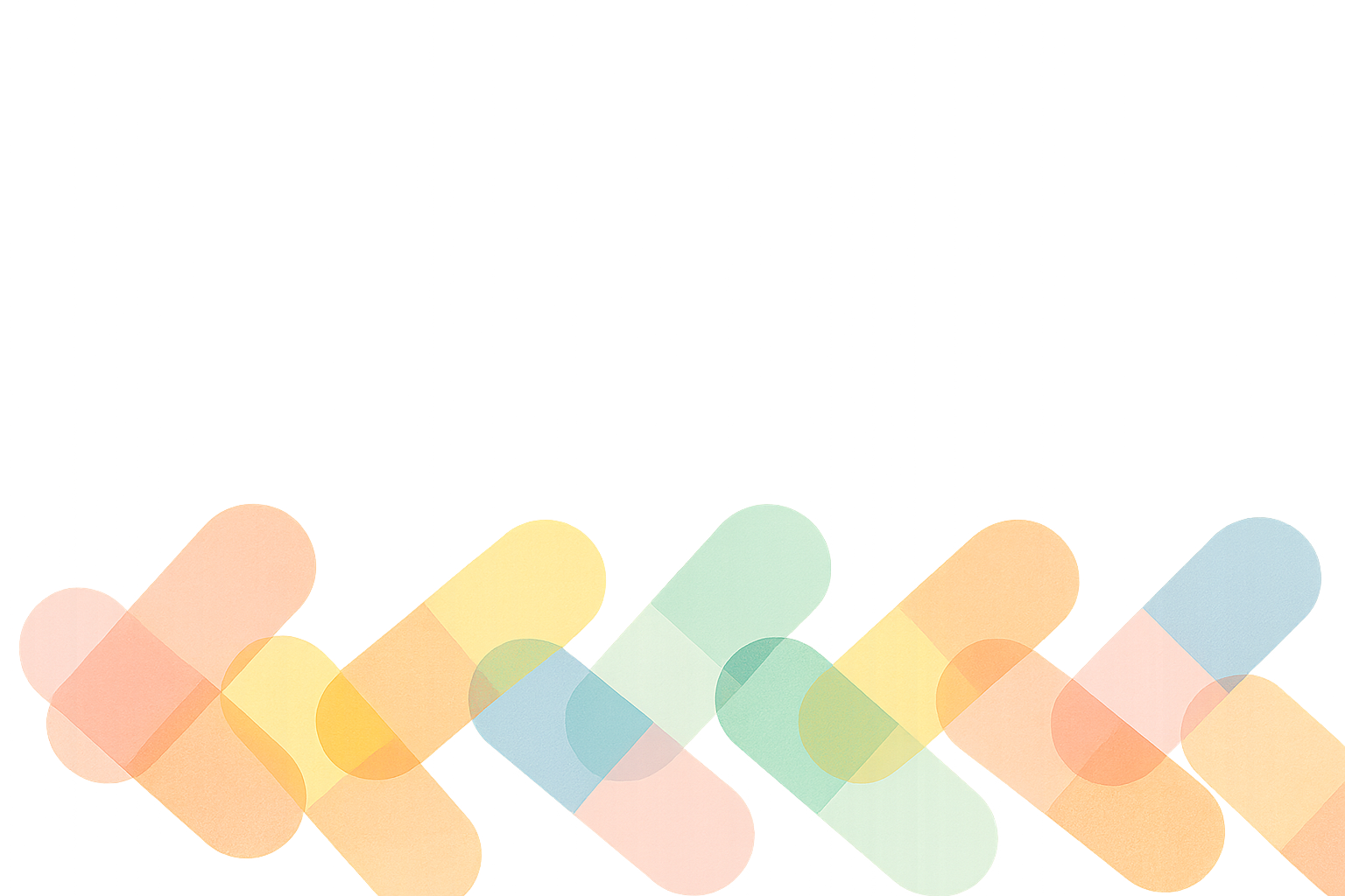 Fond dégradé doré avec des formes géométriques superposées en capsules ovales aux couleurs pastel (rose, jaune, bleu, vert, orange). Les éléments sont semi-transparents, avec des effets de superposition et d’ombres douces. Style abstrait, lumineux, épuré et contemporain, parfait pour un usage professionnel ou commercial.