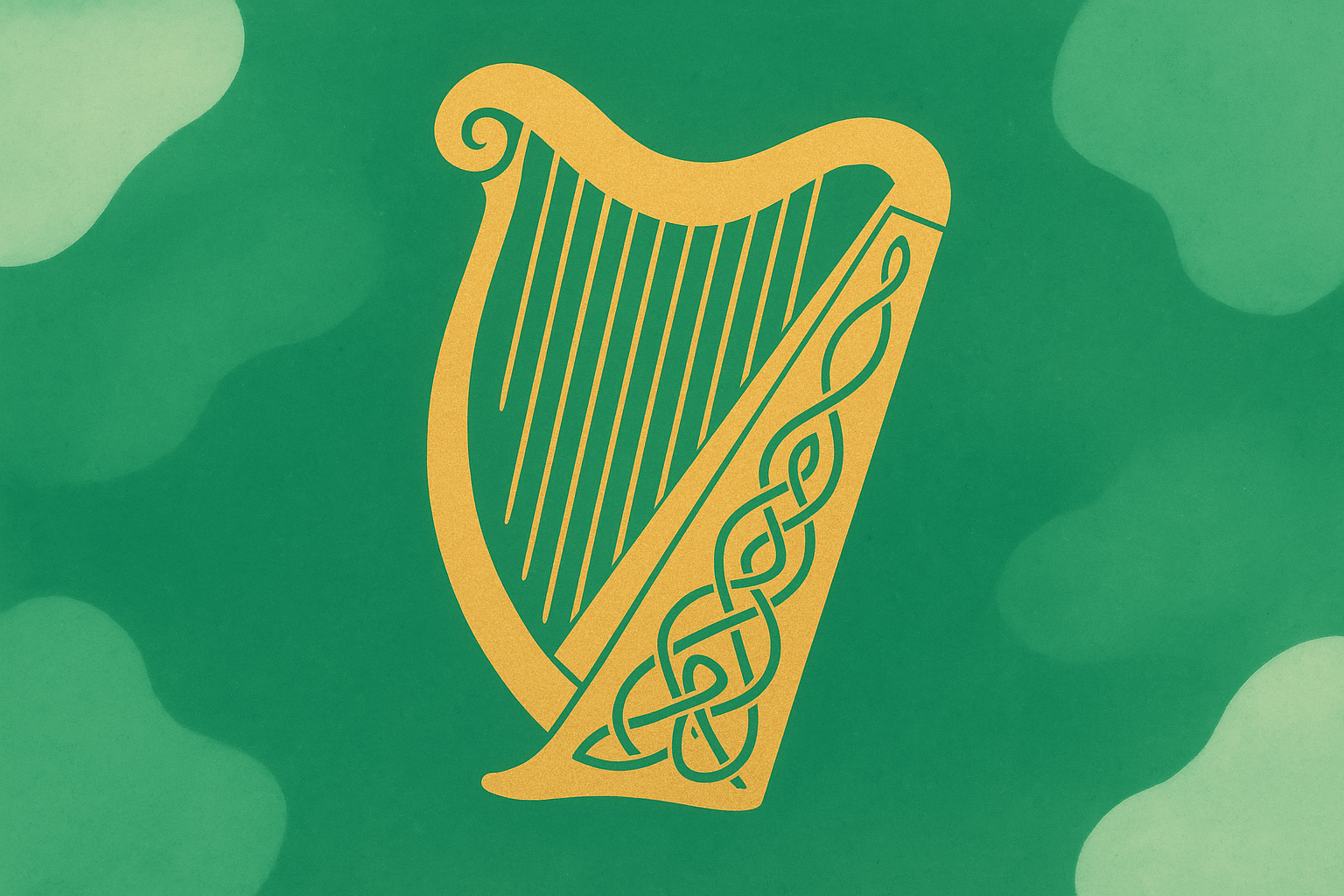 Illustration vectorielle minimaliste en tons pastel doux avec guitare, harpe, violon, notes de musique, cœur, étoile et formes abstraites. Palette de beige, ocre, vert sauge et terre cuite sur fond crème. Composition équilibrée en bas de l’image, laissant un grand espace vide pour le texte ou le message.