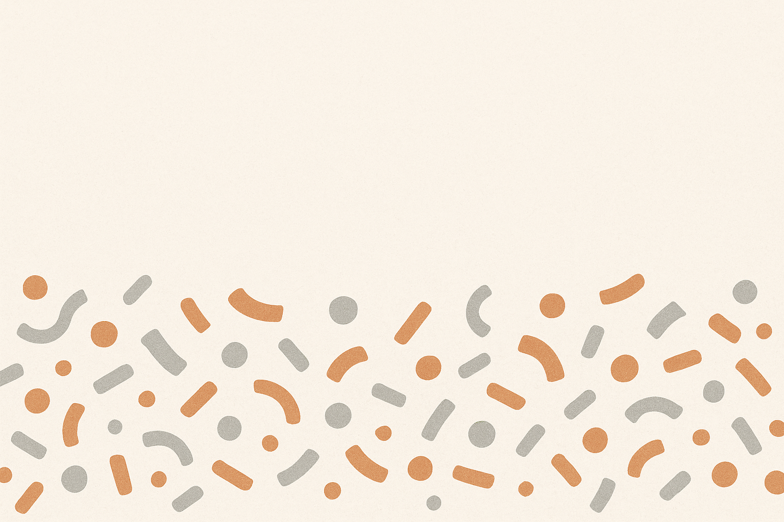 Fond crème avec motifs abstraits en demi-cercles, lignes courbes et points, dans des tons doux de terracotta orangé et gris clair. Style minimaliste, géométrique et moderne, avec une répartition équilibrée des éléments décoratifs sur la partie inférieure. Idéal pour design de carte postale professionnelle avec espace libre pour texte ou logo.