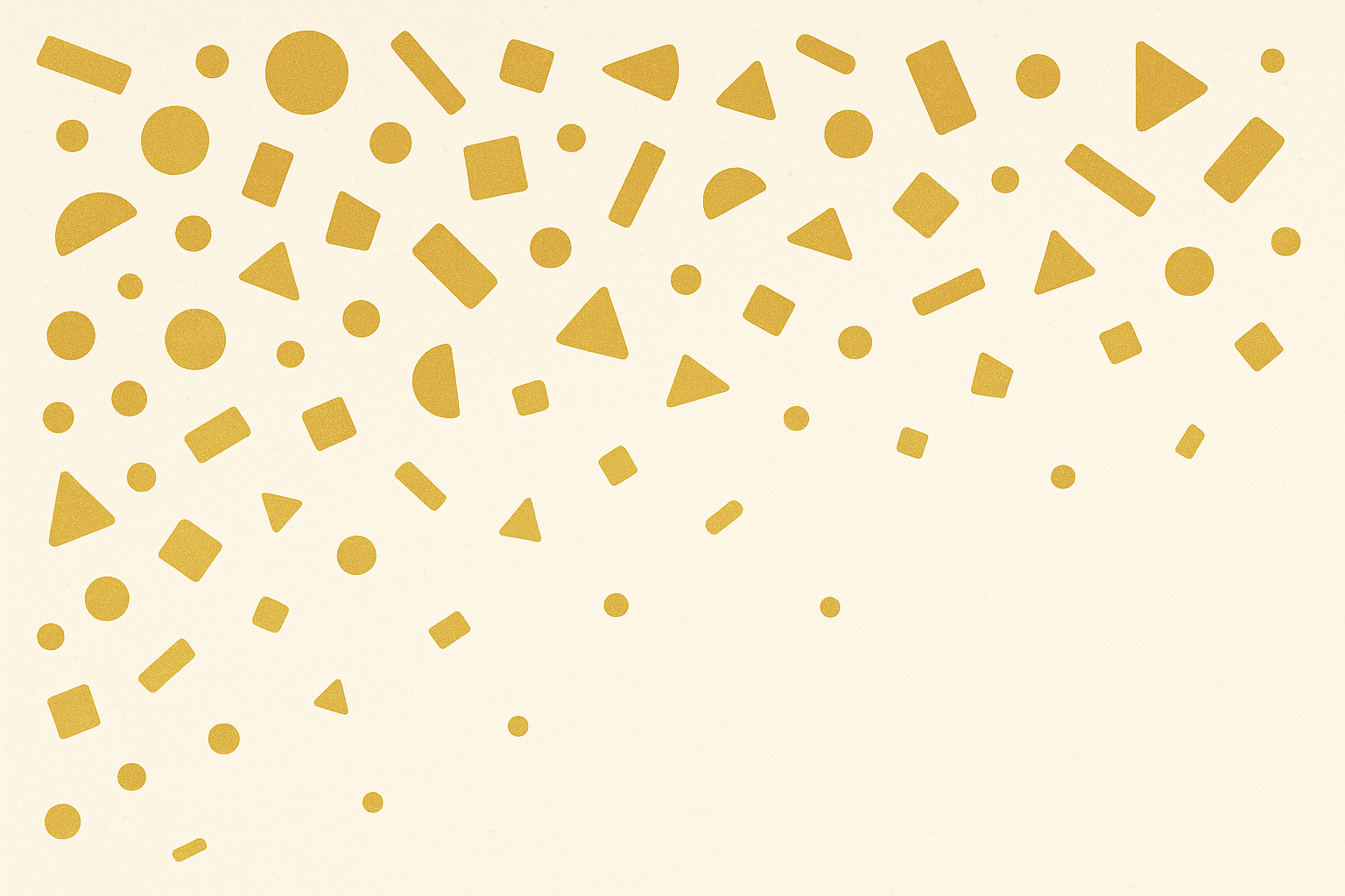 Fond crème clair avec une bordure inférieure composée de formes géométriques dorées (cercles, triangles, carrés, demi-cercles, losanges) dispersées de manière aléatoire. Le style est minimaliste, avec une palette de couleurs chaude et neutre, et une texture légèrement granuleuse qui évoque le papier naturel. Idéal pour des visuels professionnels modernes et élégants.