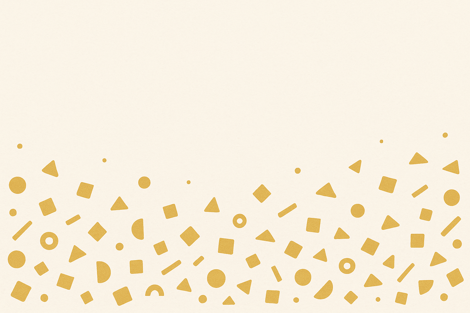 Fond crème clair avec une bordure inférieure composée de formes géométriques dorées (cercles, triangles, carrés, demi-cercles, losanges) dispersées de manière aléatoire. Le style est minimaliste, avec une palette de couleurs chaude et neutre, et une texture légèrement granuleuse qui évoque le papier naturel. Idéal pour des visuels professionnels modernes et élégants.