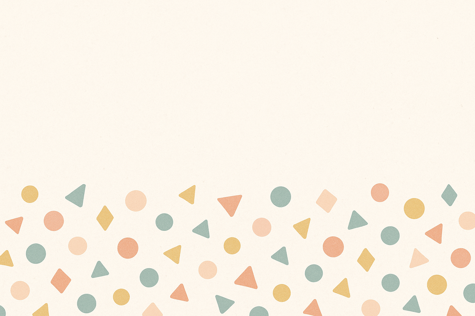 Fond crème avec motifs géométriques dispersés en bas : cercles, triangles, losanges et carrés dans des tons pastel doux (bleu-vert, saumon, jaune moutarde, pêche). Style minimaliste, ambiance légère et professionnelle, parfait pour arrière-plan de carte postale d'affaires ou communication corporate.