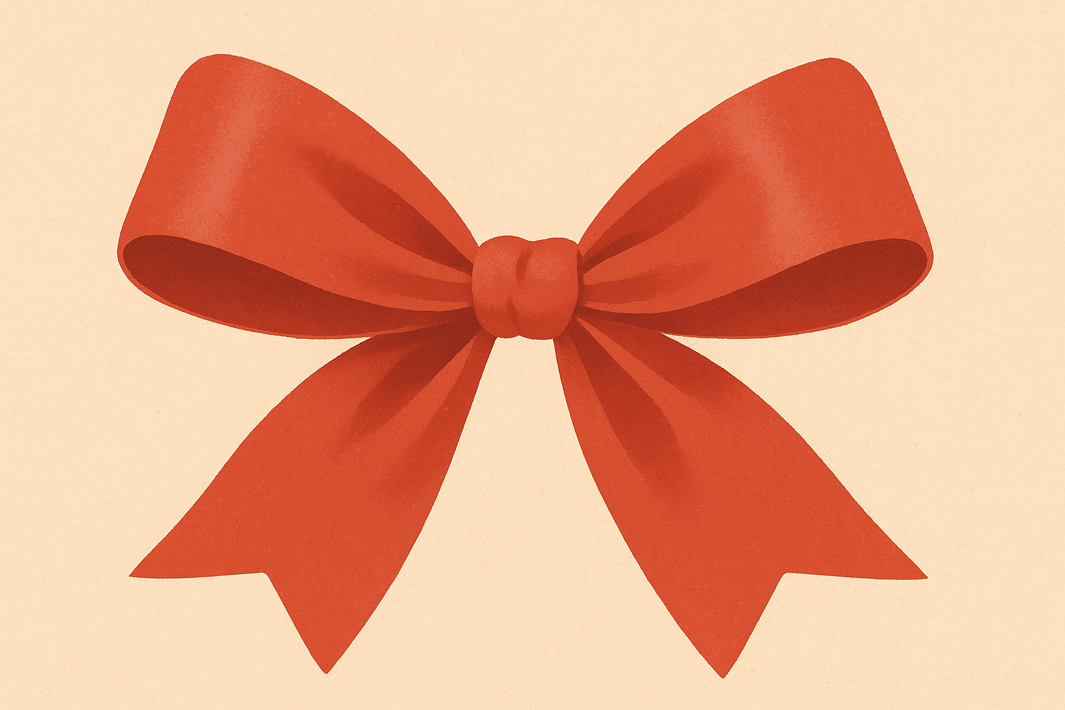 Illustration sur fond beige avec un grand nœud rouge central, entouré en bas d’éléments décoratifs festifs : bougies orange, paquet cadeau, tasse beige, feuillage vert, cœur rouge, étoile jaune, arcs-en-ciel stylisés et confettis. Style plat, couleurs chaudes et douces, ambiance conviviale et festive parfaite pour les fêtes de fin d’année.
