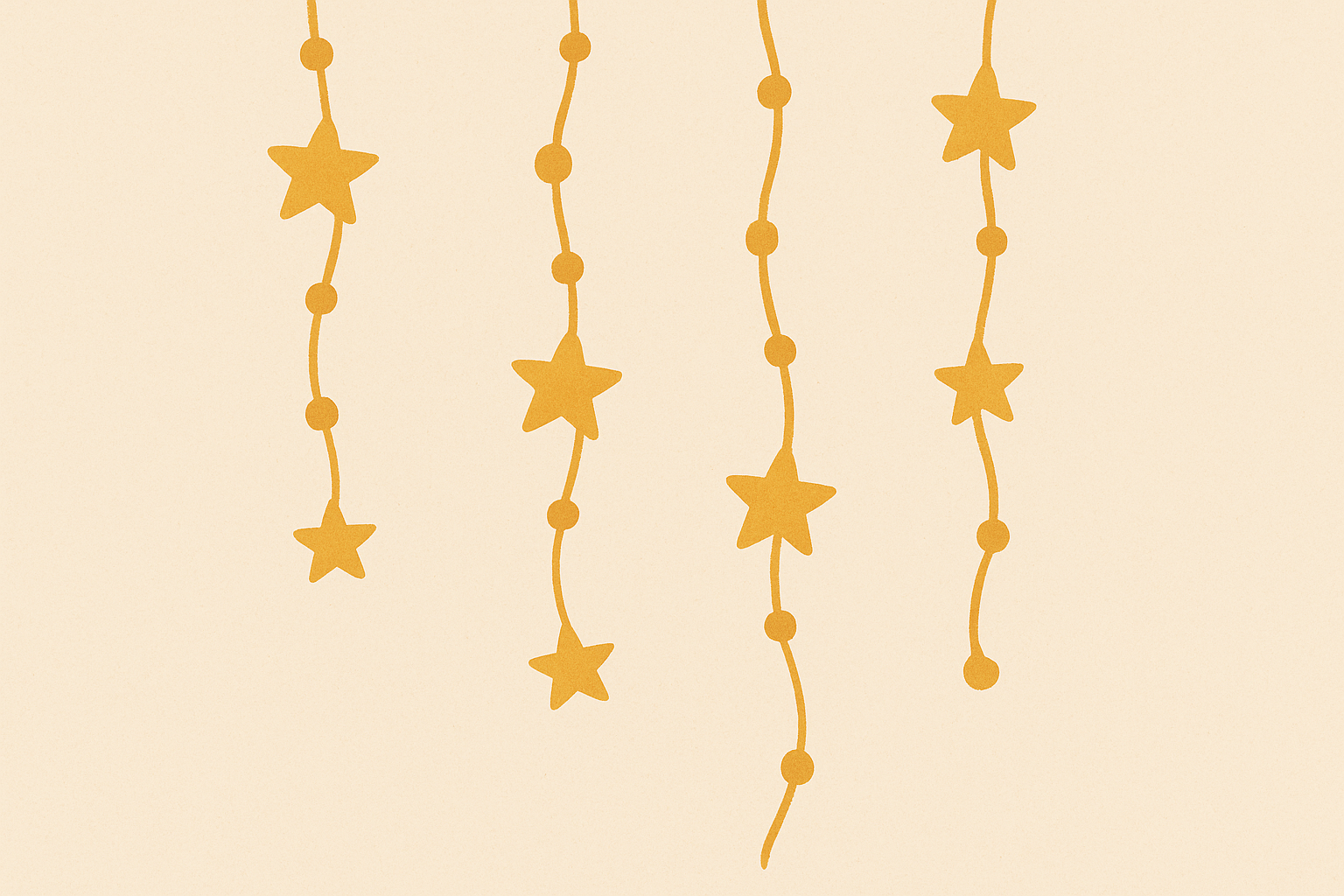 Illustration vectorielle minimaliste avec des objets de bureau stylisés : livres empilés, tasse orange, pichet jaune, étoile, plante verte en pot, et livre ouvert. Couleurs douces et pastel (ocre, vert sauge, orange brûlé, beige), formes arrondies et ambiance chaleureuse. Fond crème clair, composition équilibrée en bas de l’image avec espace vide pour texte ou message.