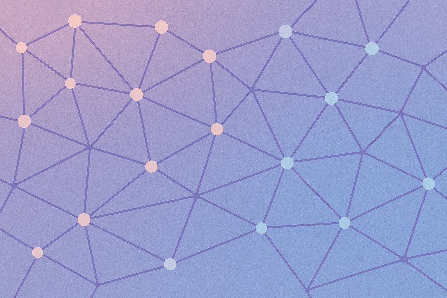 Fond dégradé blanc vers violet et bleu pastel en bas, avec un motif de réseau géométrique composé de lignes fines et de points interconnectés. Les formes triangulaires et polygonales créent une impression de structure et de technologie. Style épuré, moderne et technologique, parfait pour un usage professionnel ou commercial.