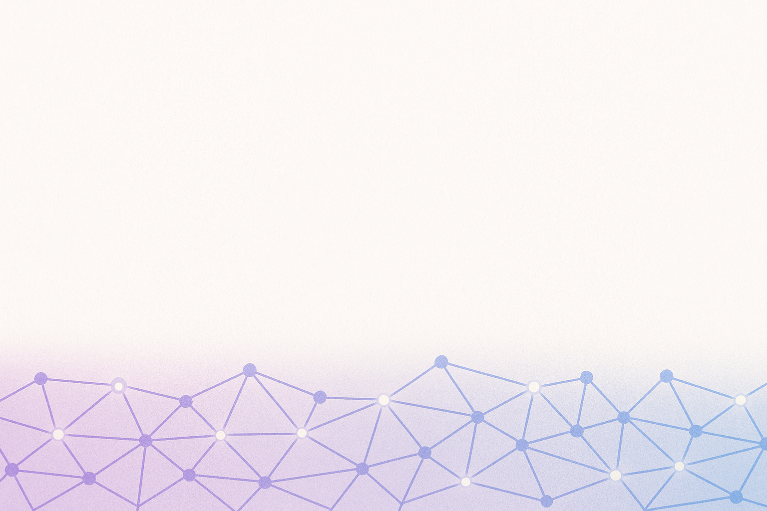 Fond dégradé blanc vers violet et bleu pastel en bas, avec un motif de réseau géométrique composé de lignes fines et de points interconnectés. Les formes triangulaires et polygonales créent une impression de structure et de technologie. Style épuré, moderne et technologique, parfait pour un usage professionnel ou commercial.