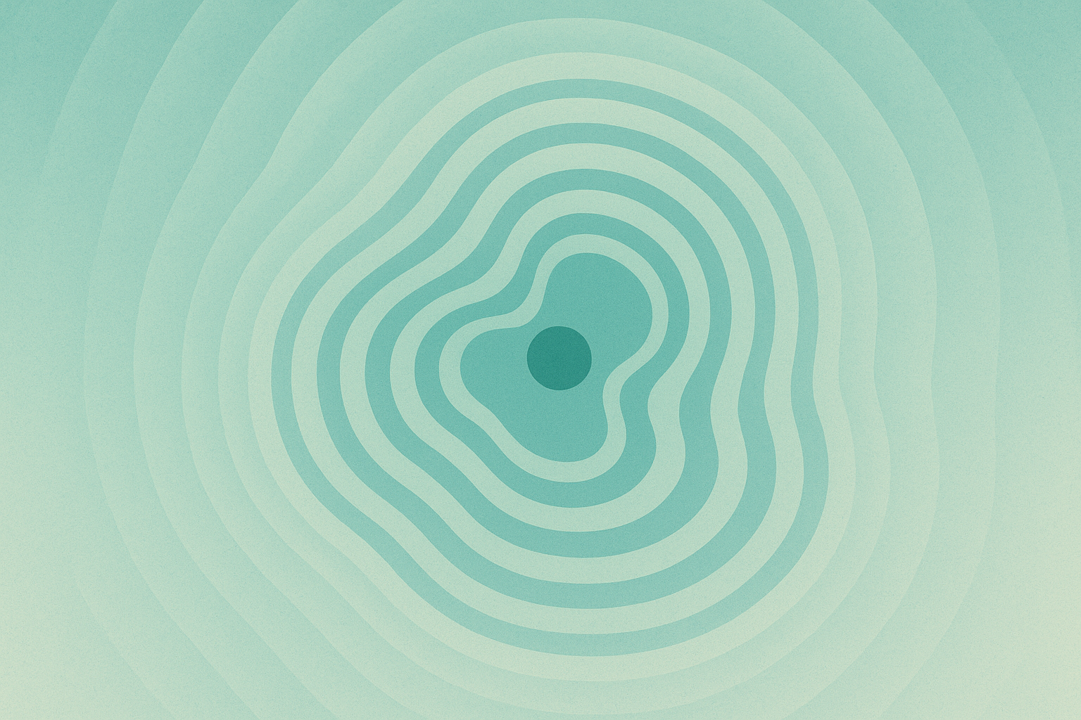Illustration vectorielle douce en tons pastel beige, turquoise et corail, représentant des éléments médicaux : pilules, feuilles, écran avec cœur et électrocardiogramme, clipboard médical et trousse de secours. Fond texturé avec cercles concentriques bleu clair évoquant calme et professionnalisme. Style épuré, moderne et rassurant, parfait pour le domaine de la santé.
