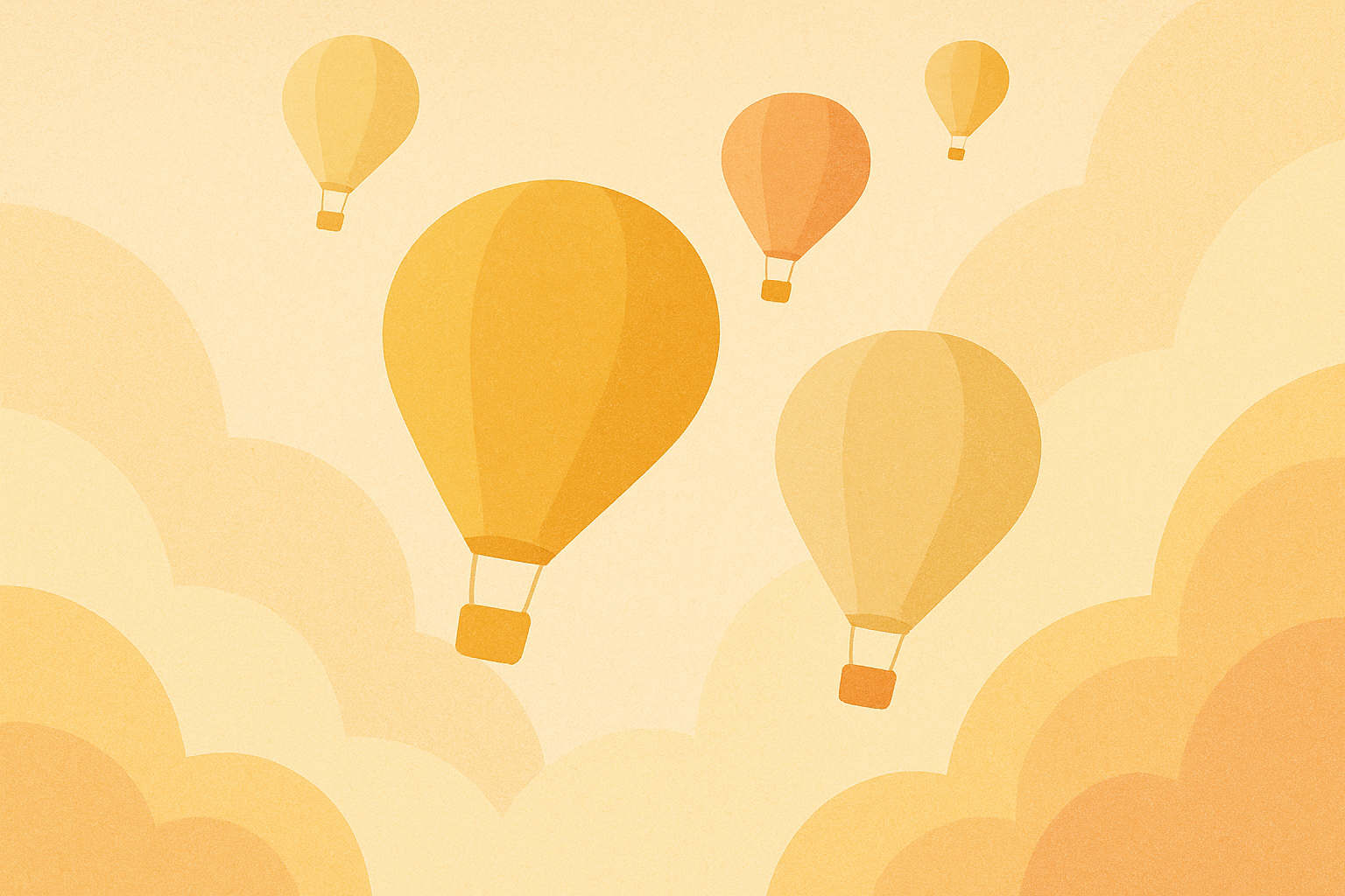 Illustration vectorielle aux tons chauds (or, ocre, beige) représentant des éléments symboliques de réussite : trophée, ruban, étoiles, ampoule, graphique en croissance, livre ouvert et branche de laurier. Style minimaliste texturé avec fond blanc cassé, parfait pour visuel de carte postale professionnelle ou communication d'entreprise.